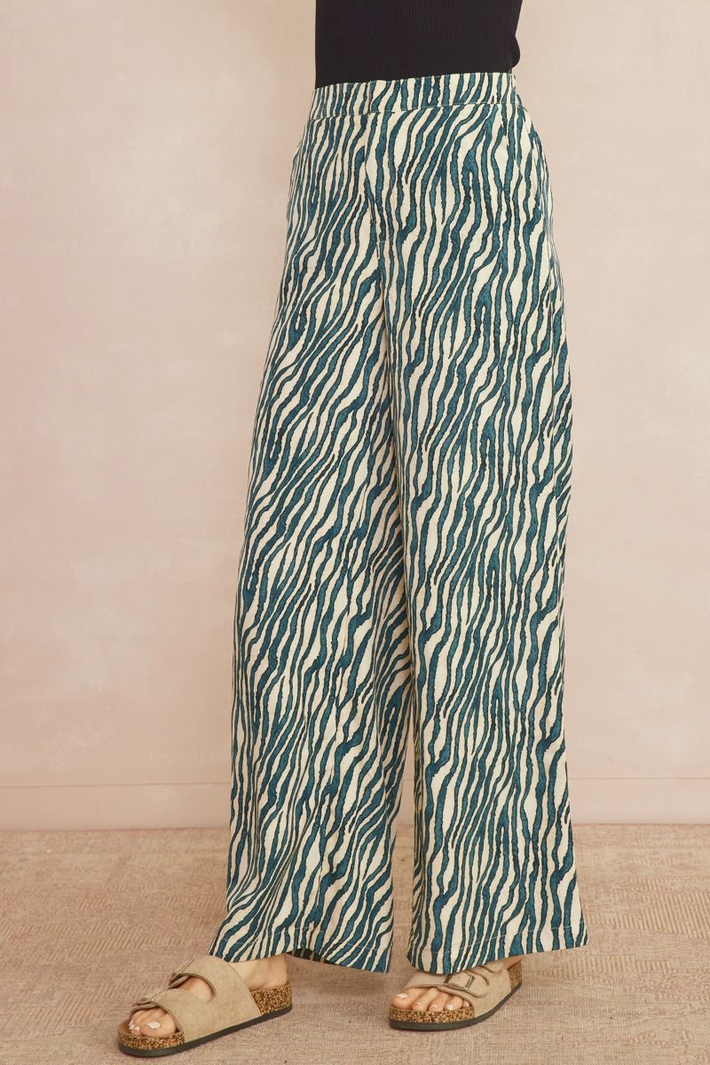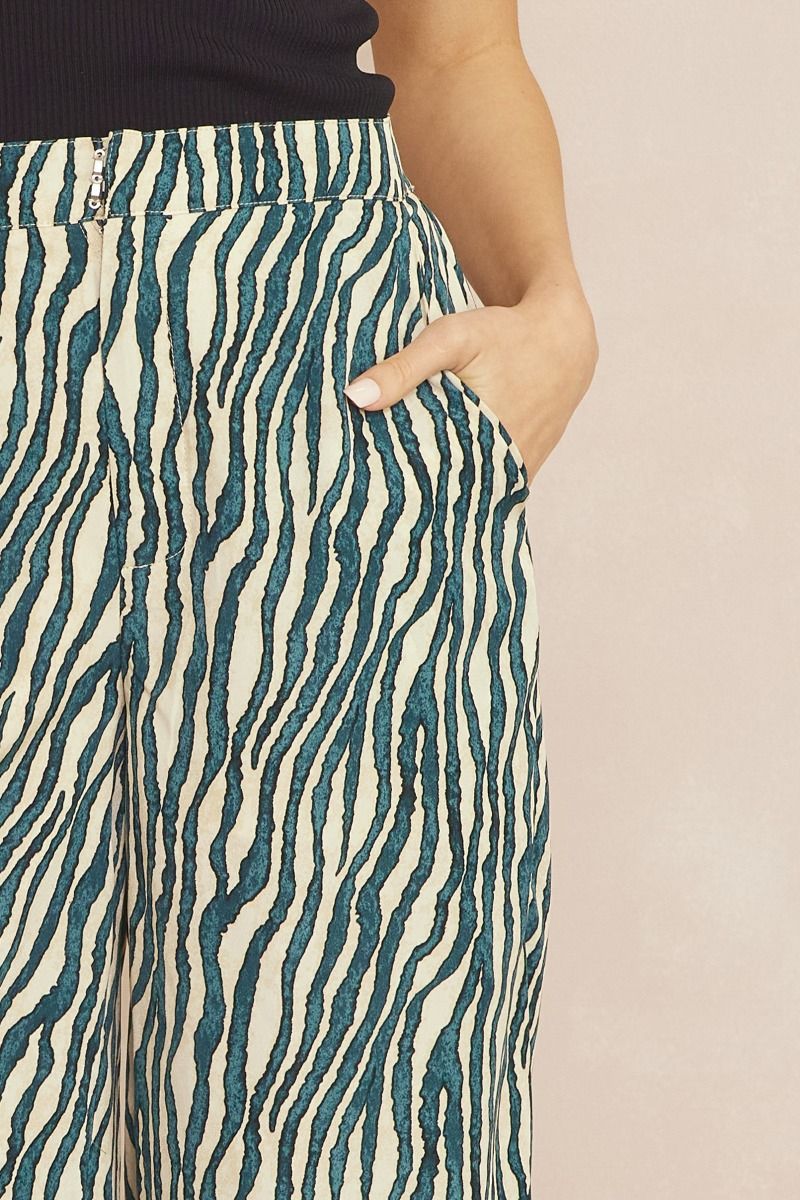 Print high waisted wide leg pants featuring pockets at side. Zipper front closure. Lined. Woven. Non-sheer. Lightweight.